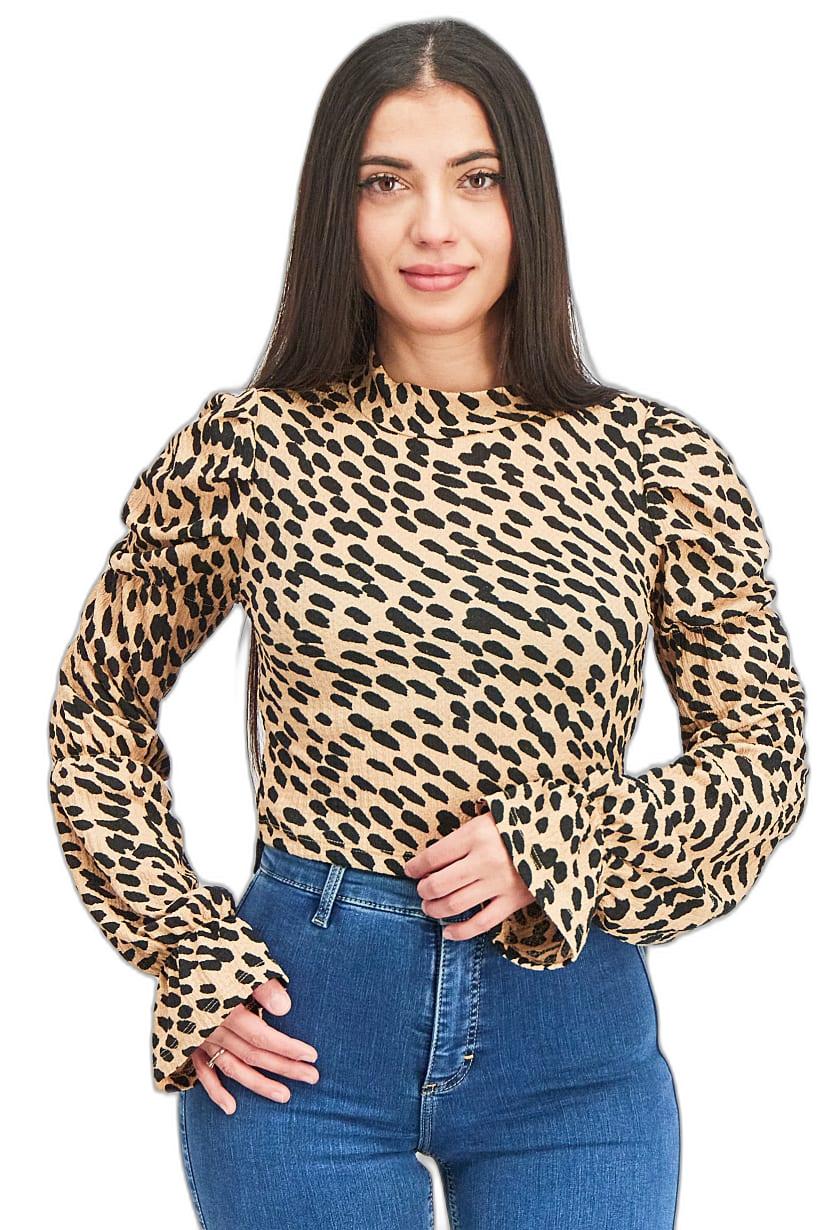| descriptionOriginal | Care : Machine washable, Fit : Regular fit, Ideal For : Women, Size shown : US, Top Style : Blouse, Types of Hem : Straight hem, Types of Neckline & Collar : Mock neckline, Types of Sleeve : Longsleeve, Disclaimer : Product color may slightly vary due to photographic lighting sources or your monitor settings., Fabrics : 99% Polyester, 1% Elastane, Occasion : Casual, Pattern & Print : Allover print, Types of Closures : Pullover, Color Family : Tan, |