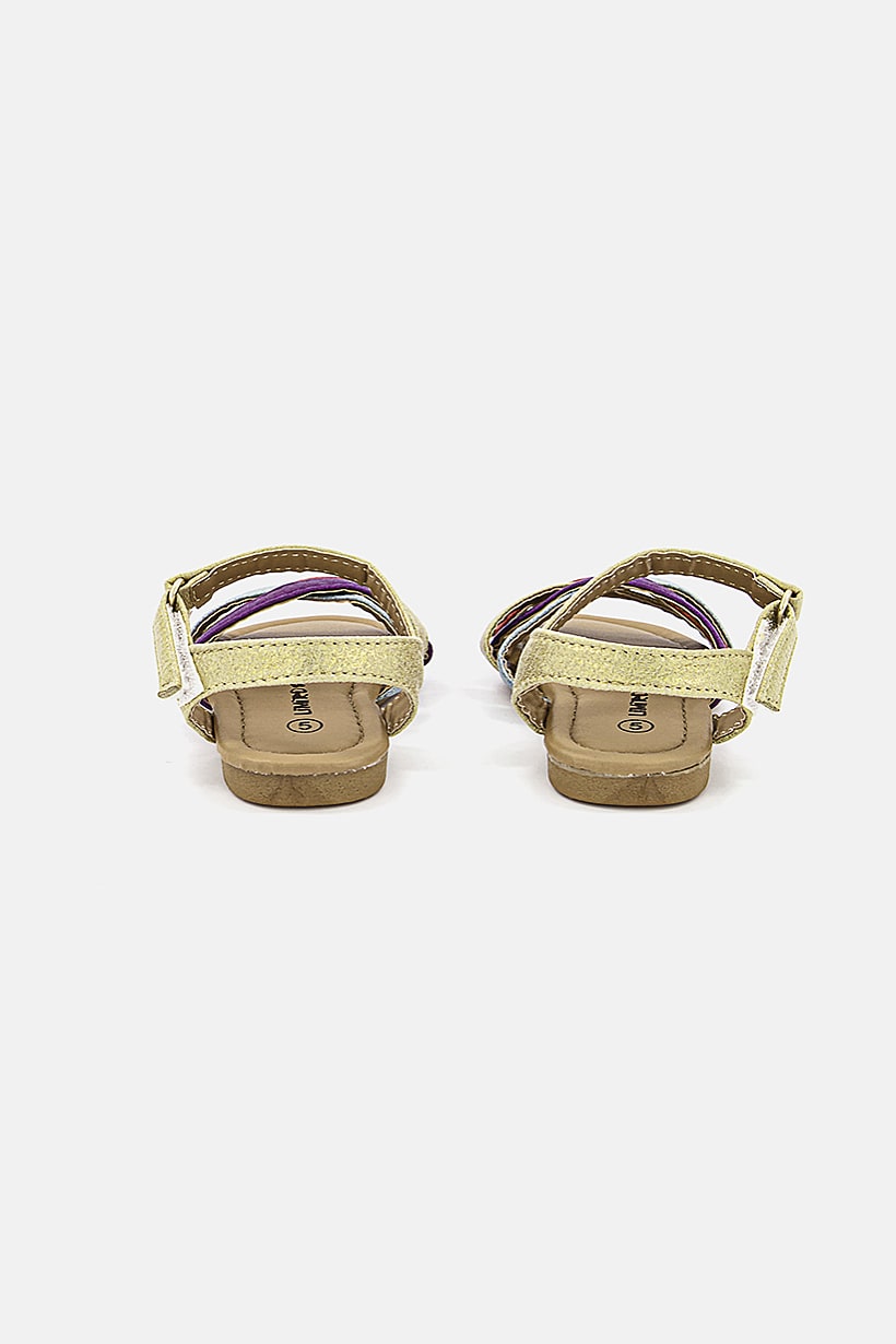 Ideal For : Girls, Insole Features : Padded insole, Shoe Closure : Velcro closure, Shoe Width : Medium, Sole Material : Synthetic sole, Toe Style : Open toe, Types of Character : No Character, Disclaimer : Product color may slightly vary due to photographic lighting sources or your monitor settings., Occasion : Casual, Pattern & Print : Metallic, Shoe Material : Synthetic Leather, Color Family : Tan,
