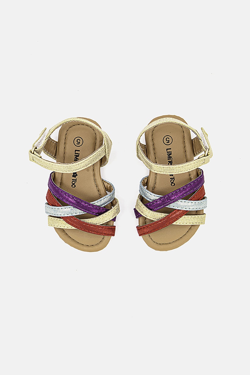 Toddlers & Babies, Footwear, toddlers girl velcro closure metallic sandals tan and gold combo