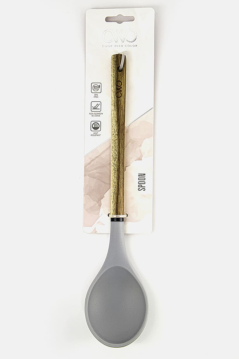 | nameOriginal | Wooden Handle Silicone Spoon, Tan and Grey |