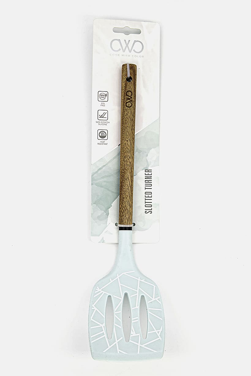 | nameOriginal | Wooden Handle Slotted Turner, Tan and Mint |