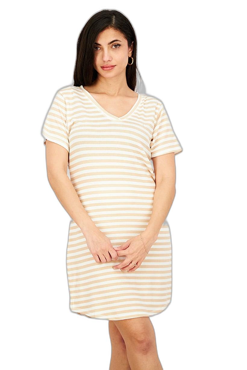 | nameOriginal | Women Stripe Short Sleeve Night Dress, Tan and White |