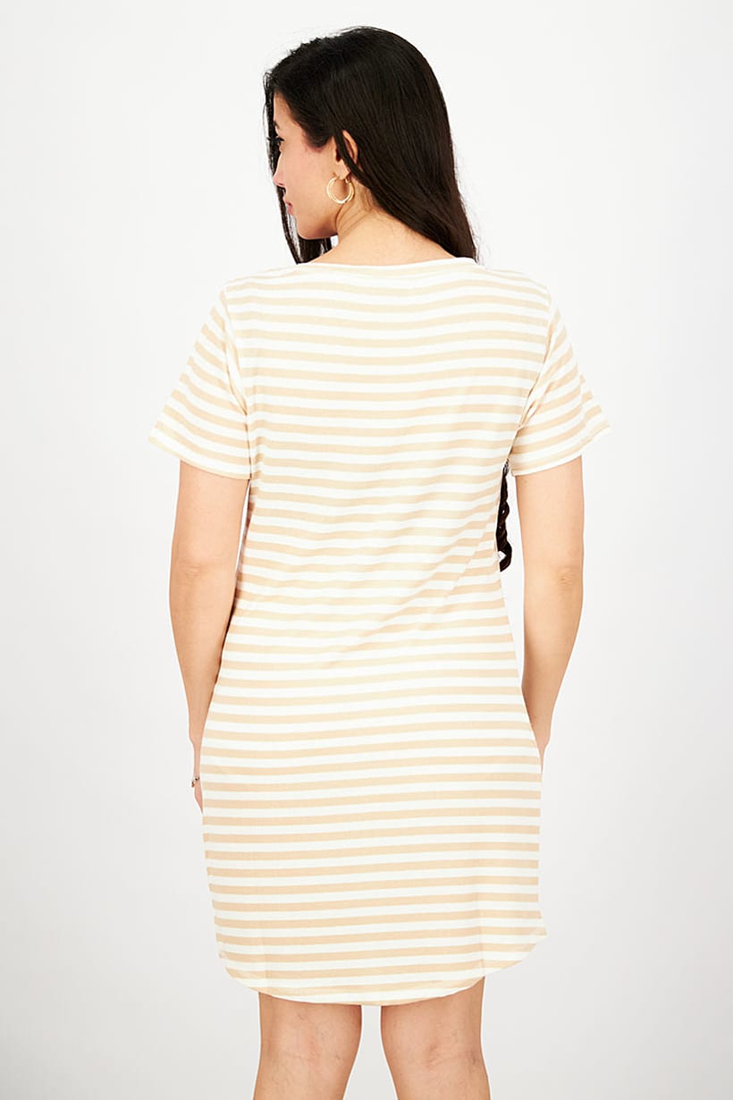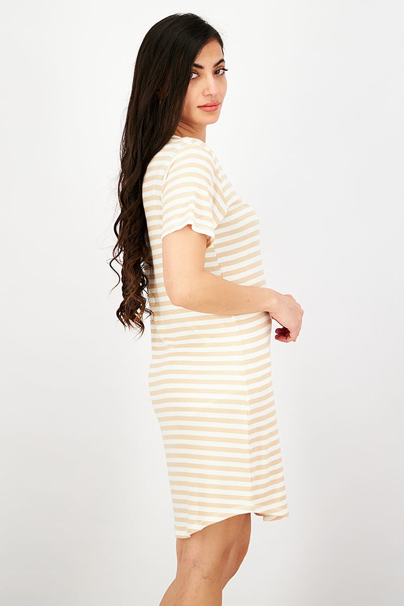 | sub_Categories | Women Clothing, Sleepwear / Homewear, women stripe short sleeve night dress tan and white |