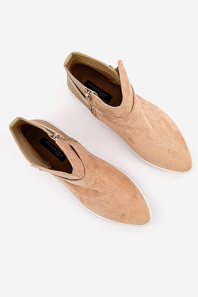 Heel Style : No heel, Ideal For : Women, Shoe Closure : Zipper closure, Shoe Width : Standard, Sole Material : Rubber sole, Style : Ankle Boot, Toe Style : Pointed toe, Occasion : Casual, Shoe Material : Synthetic Leather, Color Family : Tan,