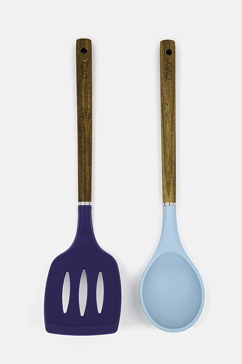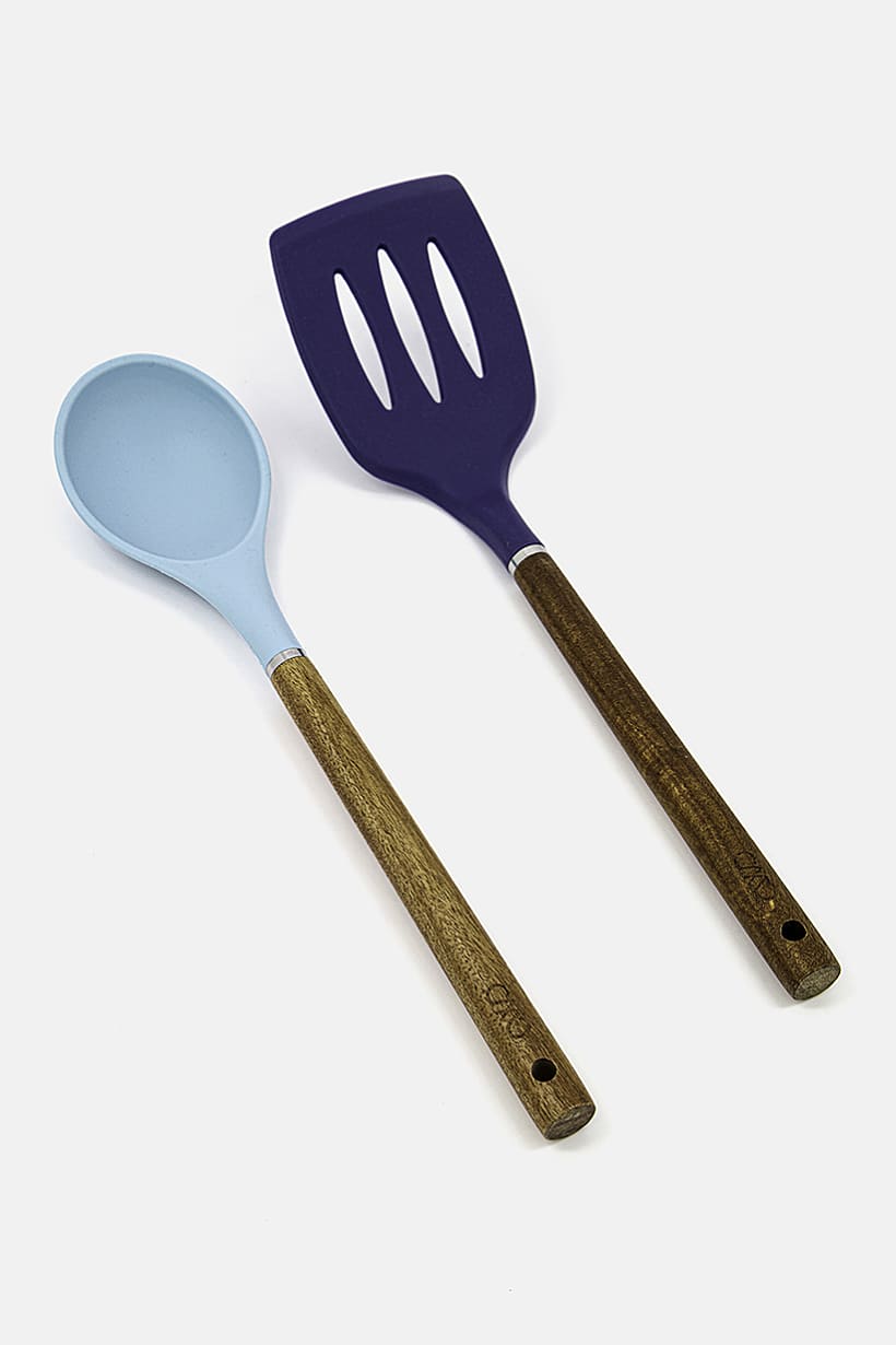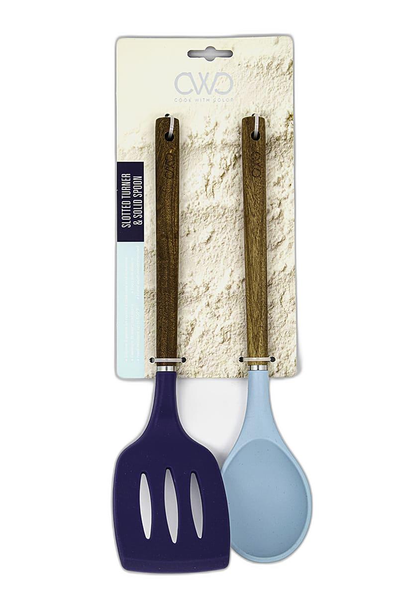 | nameOriginal | Wooden Handle Slotted Turner and Solid Spoon, Tan and Light Blue and Navy |