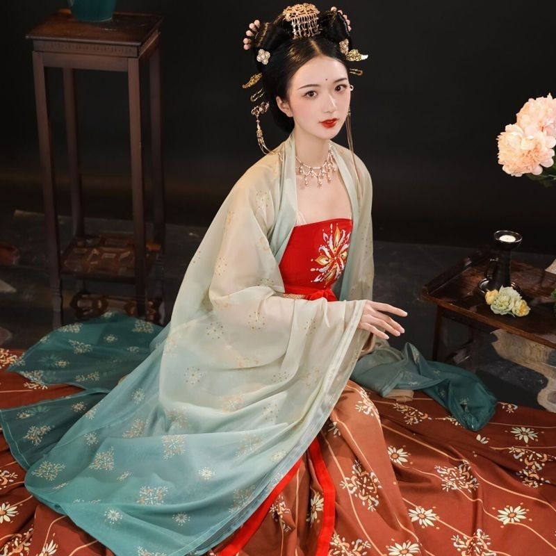 | nameOriginal | Tang Dynasty Hanfu Embroidery Chebula Qi Chest Tang Dynasty Complex Embroidery Restoration Big Sleeve Shirt Spring Summer Wind Summer Often Wear suit |