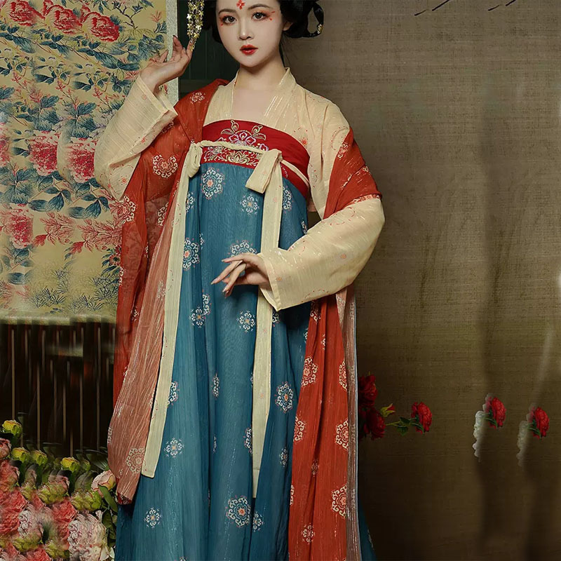 | nameOriginal | Tang Han clothing women's recovery original Jin Fanghua spring and summer improved chest dress fairy ancient costume full set |