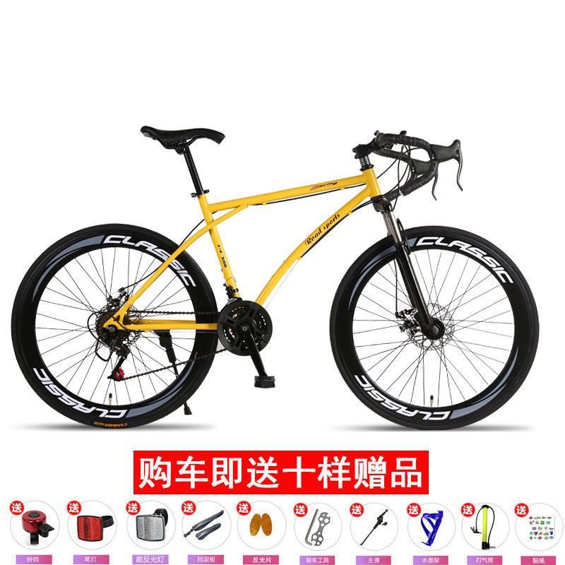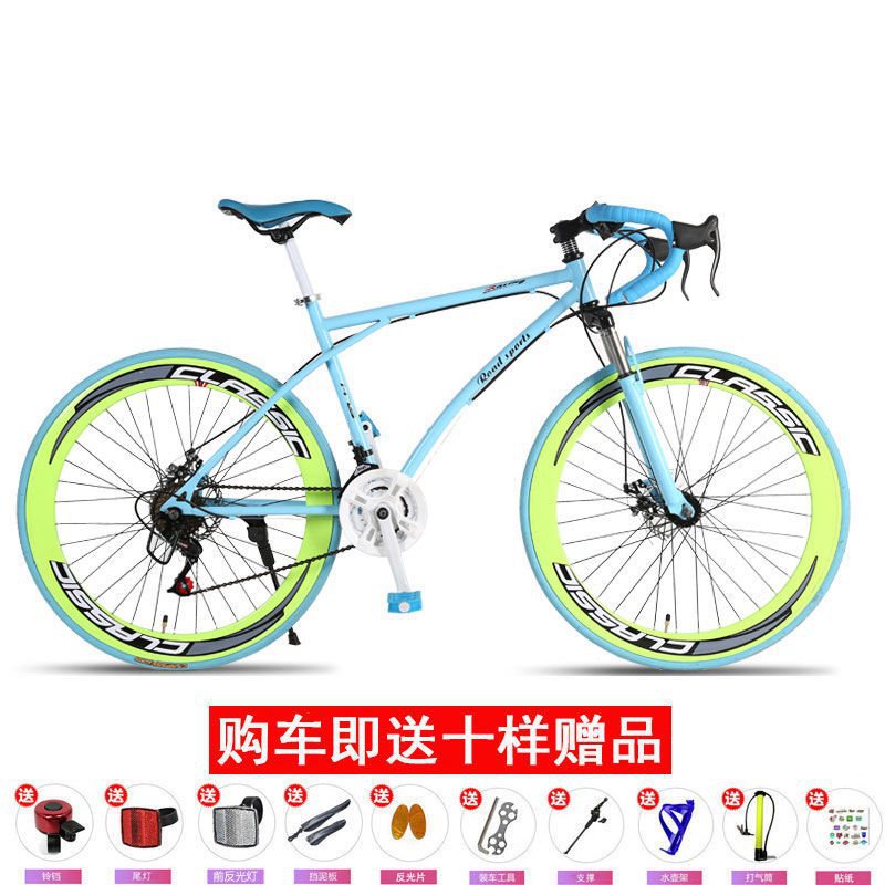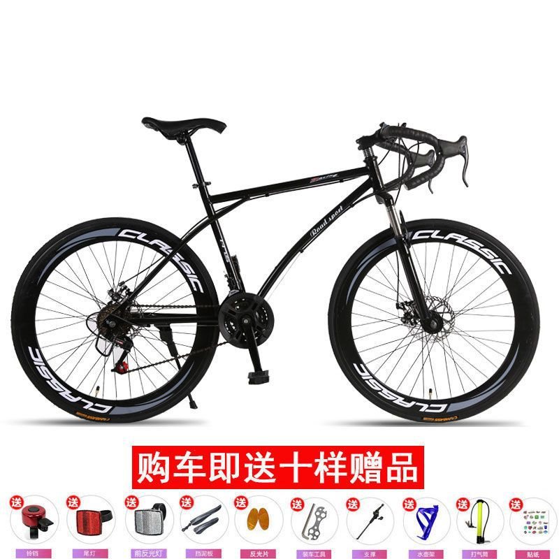 | nameOriginal | Tang Si solid tire 24 speed variable speed dead flying bicycle disc brake shock absorption integrated wheel men's and women's mountain bike road bike |