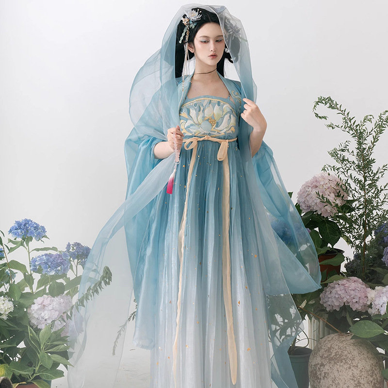 Tang Style Original 2024 New Hanfu Women’s Big Sleeve Shirt Chebula Skirt Suit Embroidered Spring and Summer Chest-length Skirt Super Immortal Ru