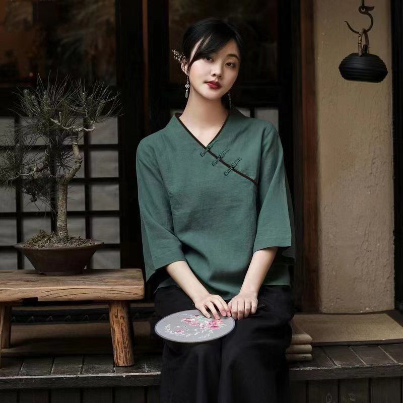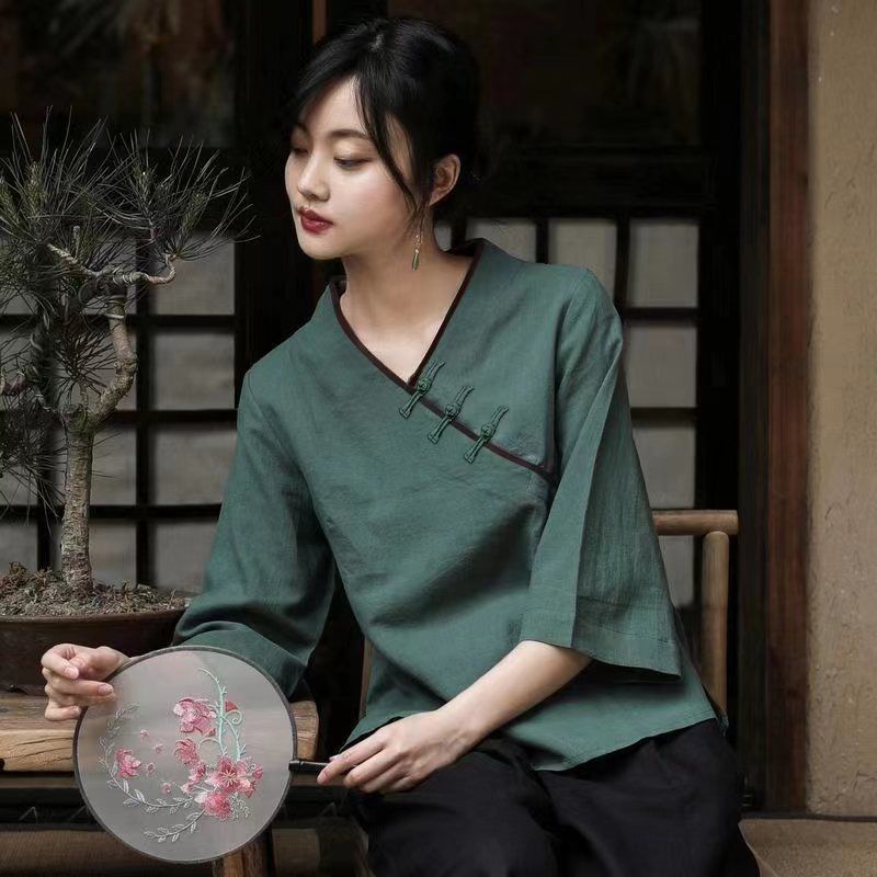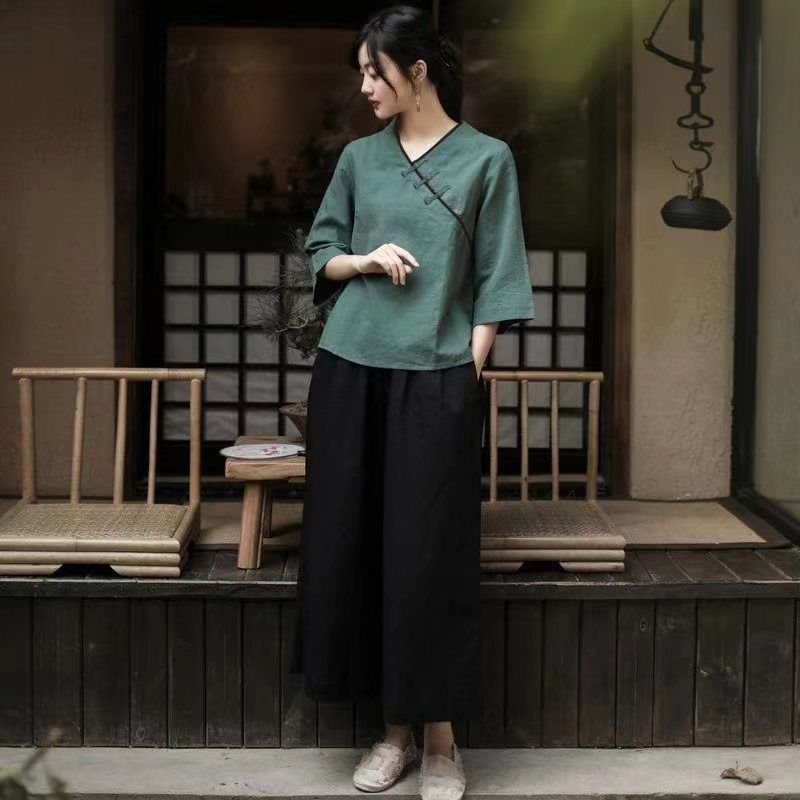 | nameOriginal | Tang Suit Women's Spring and Summer New Improved Short-sleeved Top Republic of China Style Tea Art Clothing Husband Clothing Hanfu Zen Style Hair |