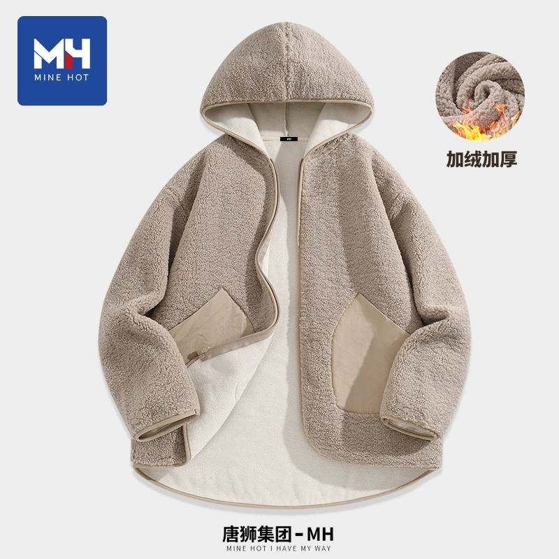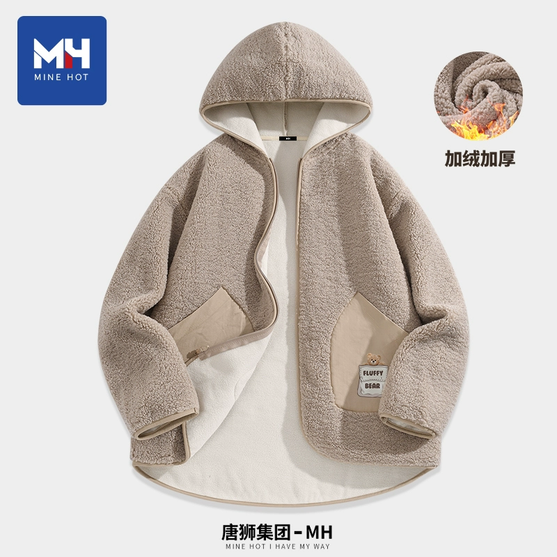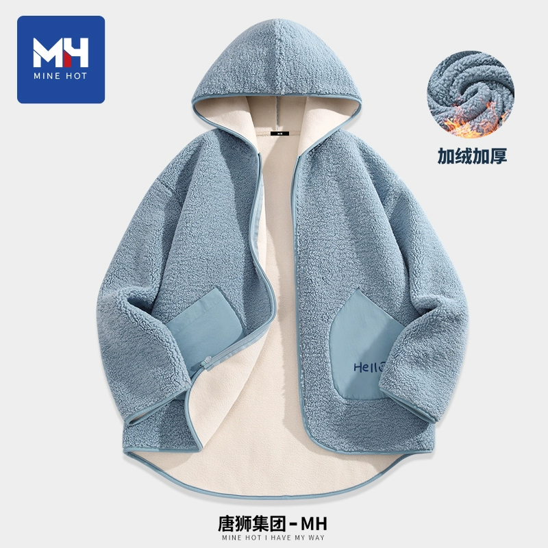 Tangshi pink lamb wool autumn and winter polar fleece jacket