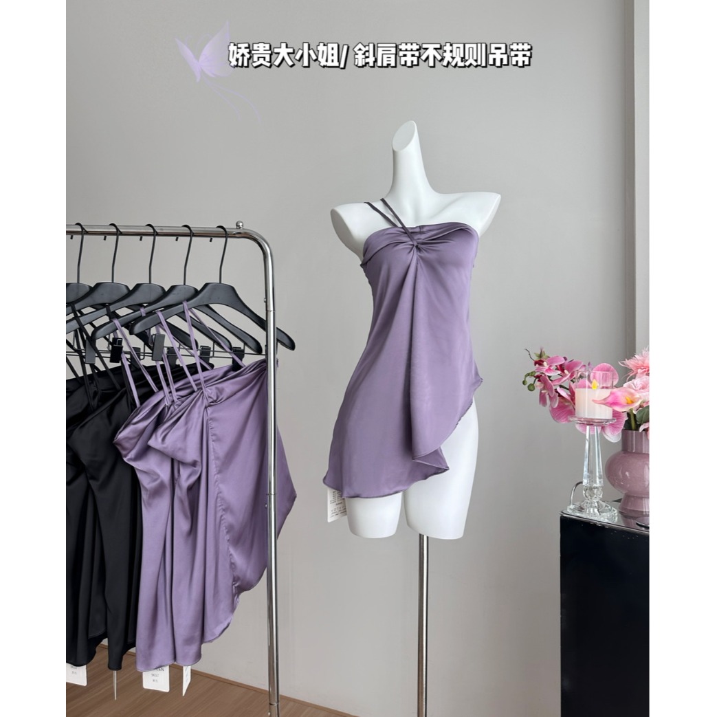 Tao Zi’s homemade irregular temperament top with diagonal shoulder straps