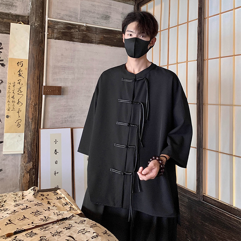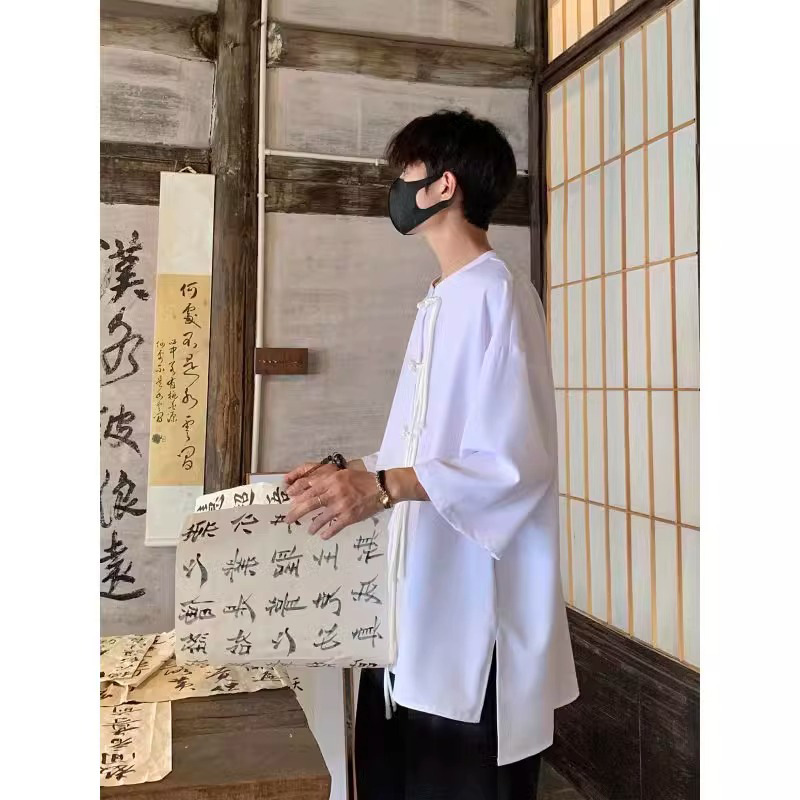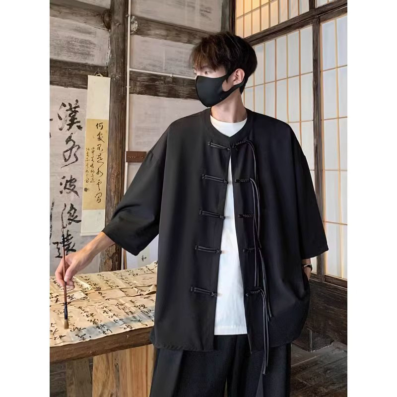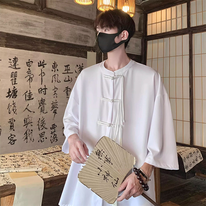 | nameOriginal | Taoist Robe Hanfu Zen Feeling National Style New Chinese Style Improved Ice Silk Short Sleeve Shirt Men's Niche Antique Light Seven Points |