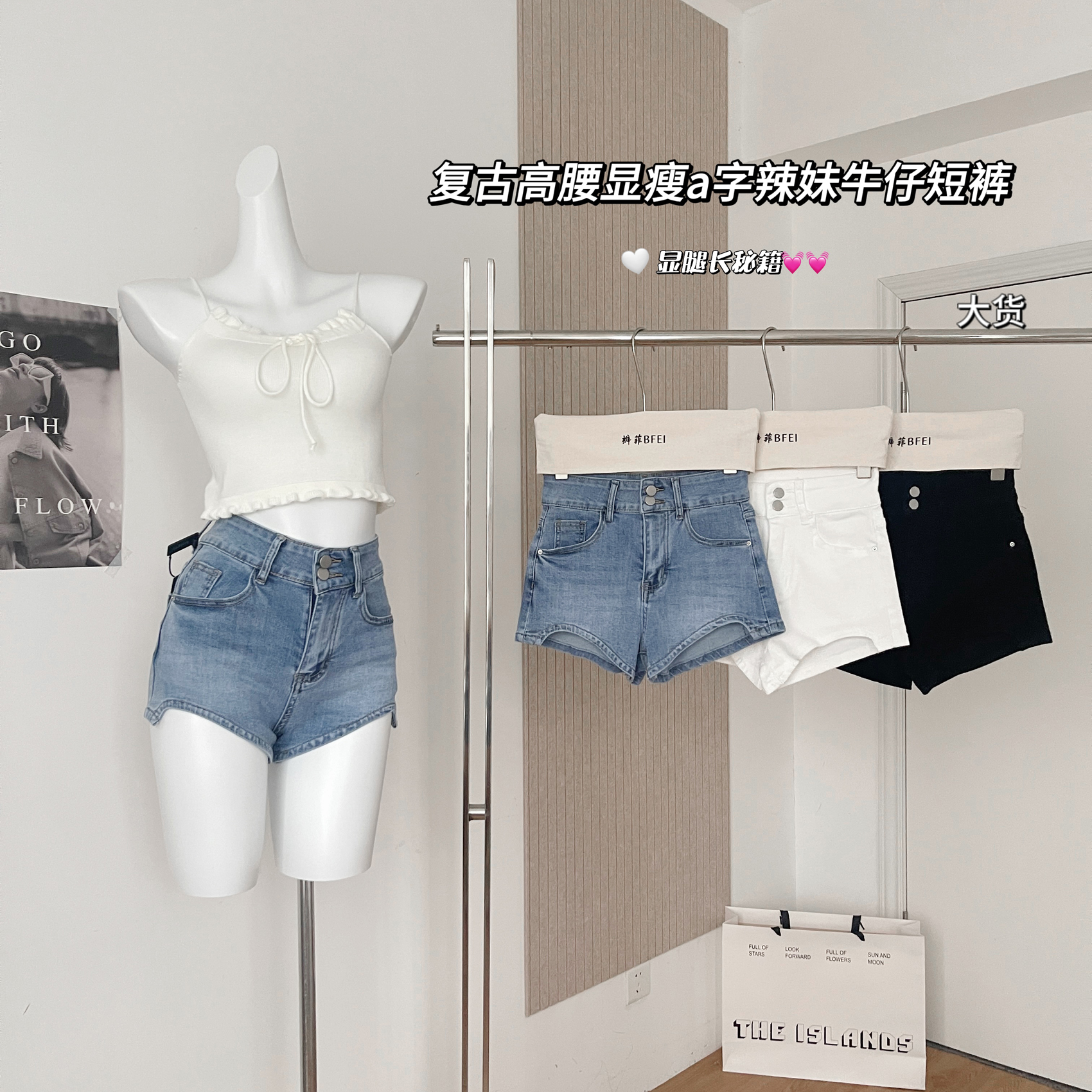 | nameOriginal | Taozi Homemade 2024 Summer Wear Thin Versatile Retro High Waist Slim A Line Hot Girl Denim Shorts for Women |