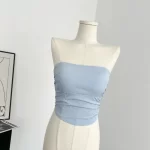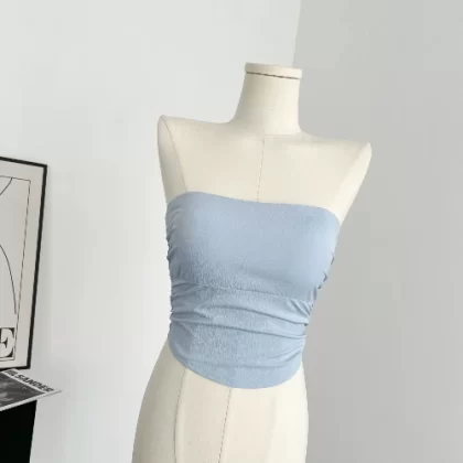 Taozi homemade Korean sexy tube top blue sexy hot girl gentle slimming pleated short tube top