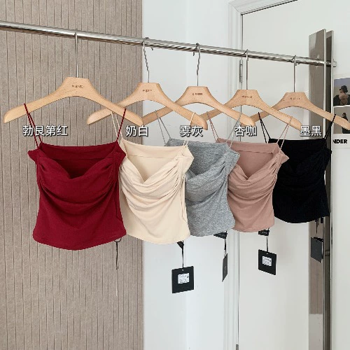 | nameOriginal | Taozi homemade white modal breast pad suspenders women's short one-line collar pleated knitted inner vest top |