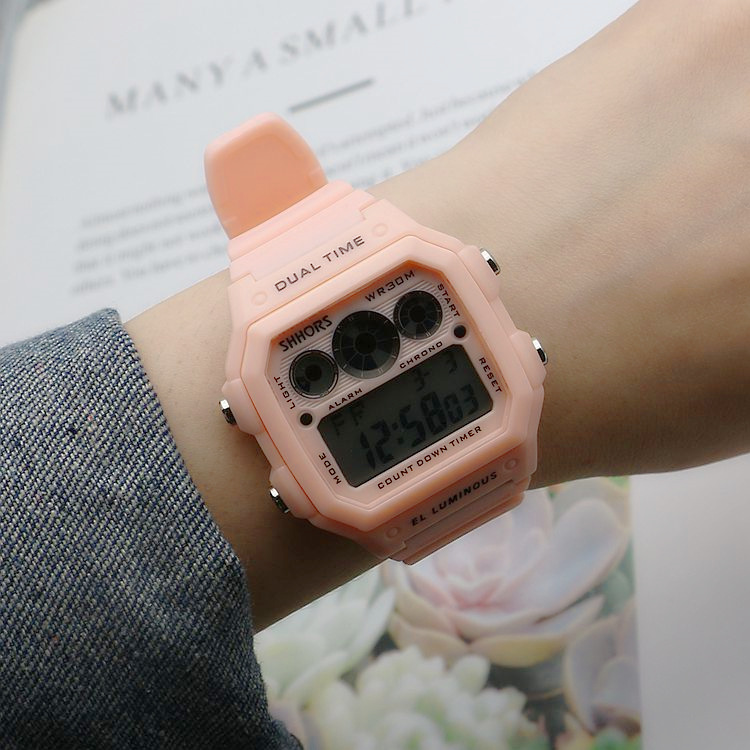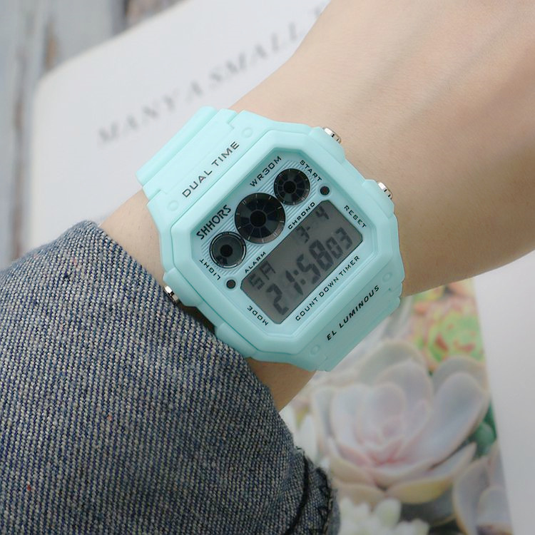 Tape Square Electronic watch boys and girls multi-functional luminous weekly calendar middle school student sports watch