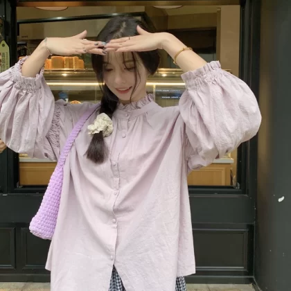 | nameOriginal | Taro Purple Spring Stand Collar Loose Sun Protection Long Sleeve Shirt |