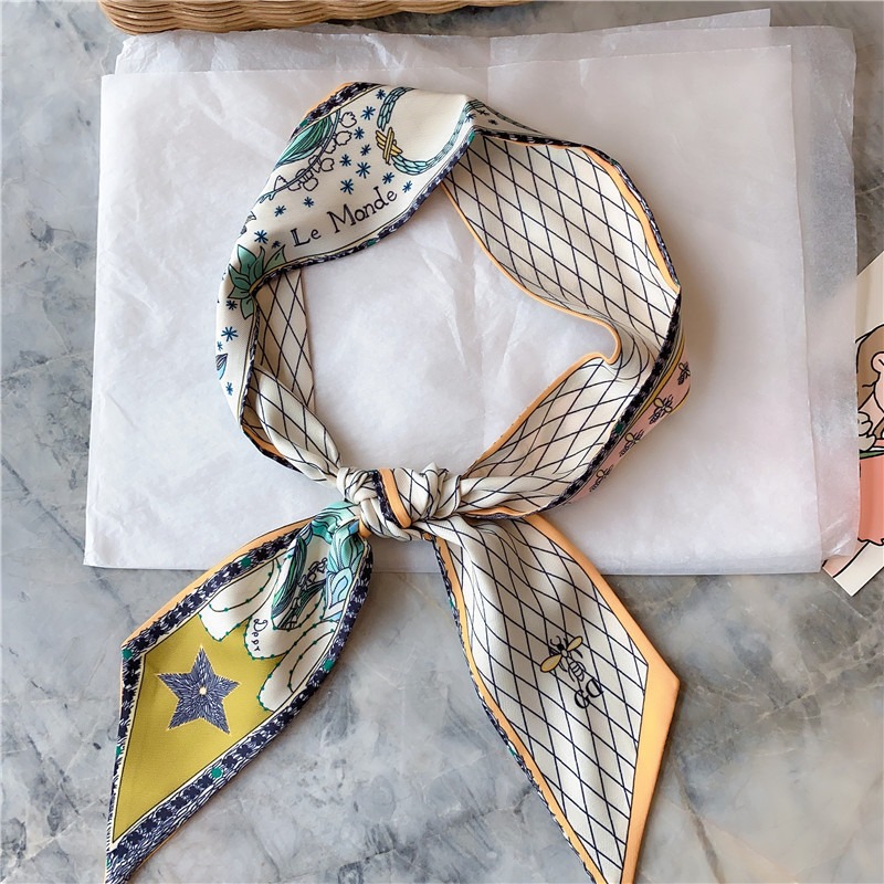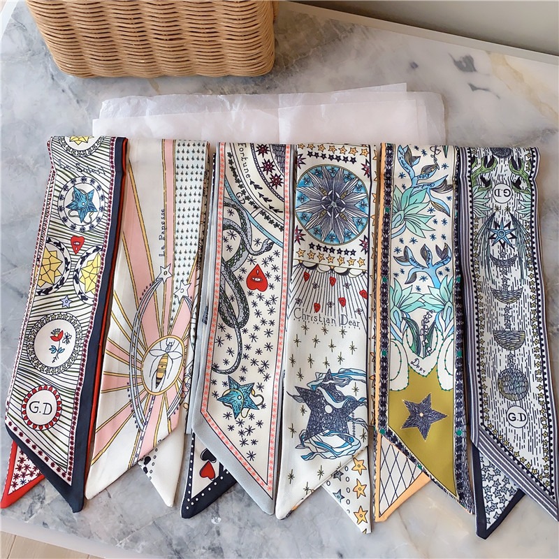 Tarot chic Silk Scarf Small Long Spring and Autumn Decorative Hair Band Korean All-match Tie Bag with Ribbon Small Scarf