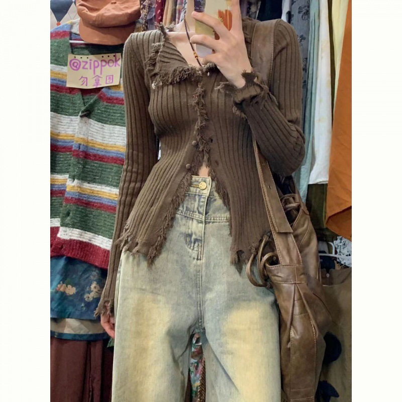 Tassel Curry Cardigan Sweater Coat Women's Spring and Winter 2024 New Slim-fit Slimming Design Sense Knitted Base Top
