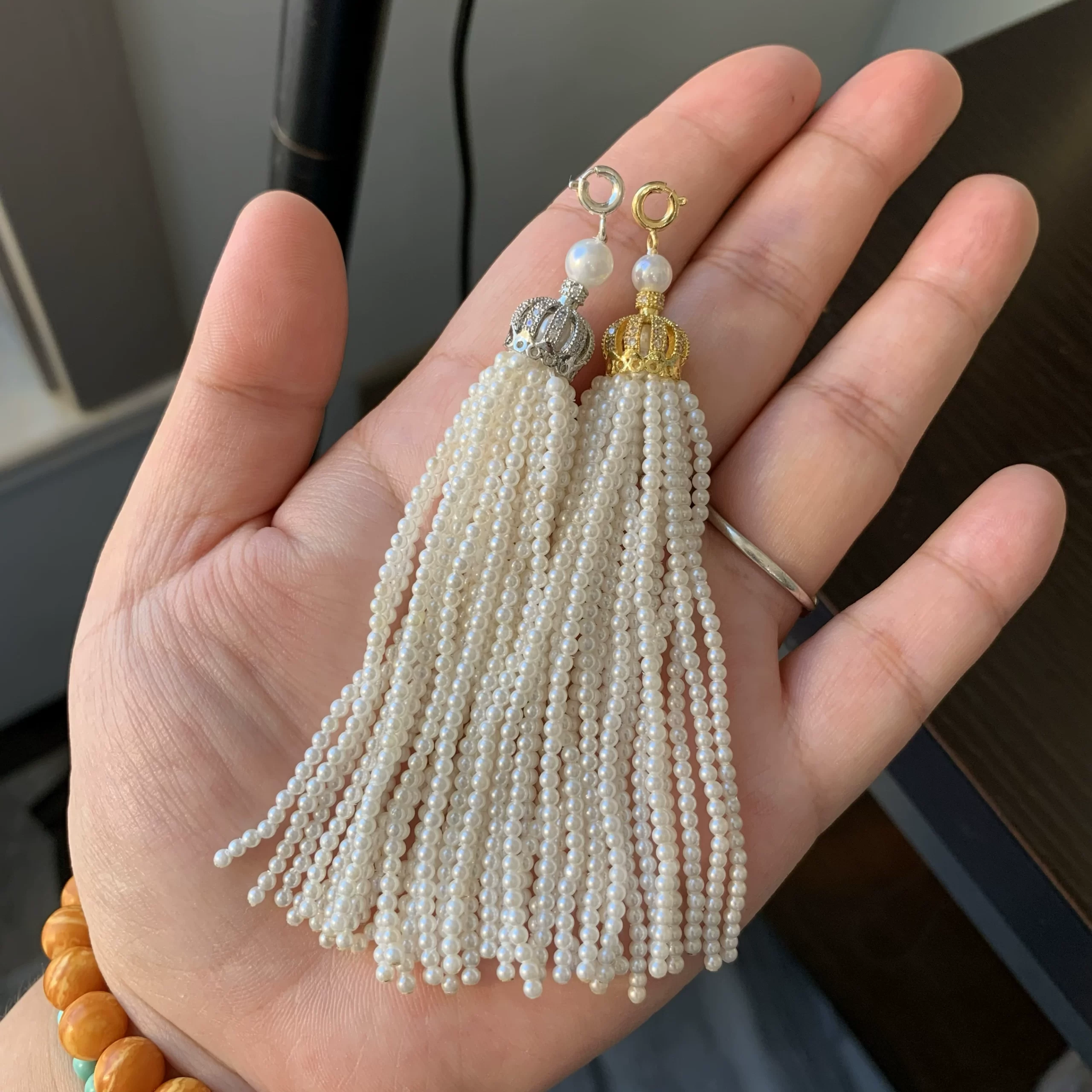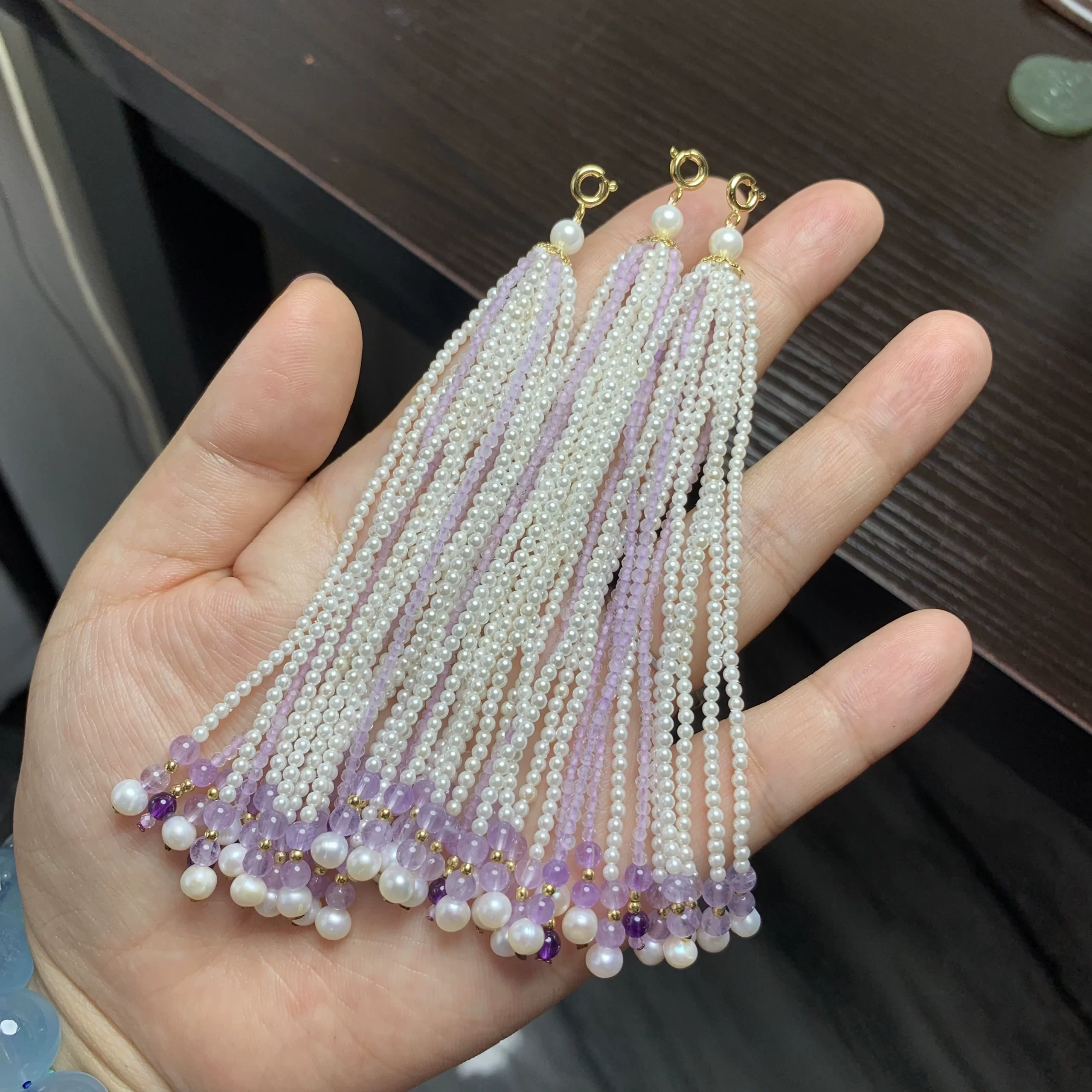 | nameOriginal | Tassel natural pearl crown earrings amethyst diy |