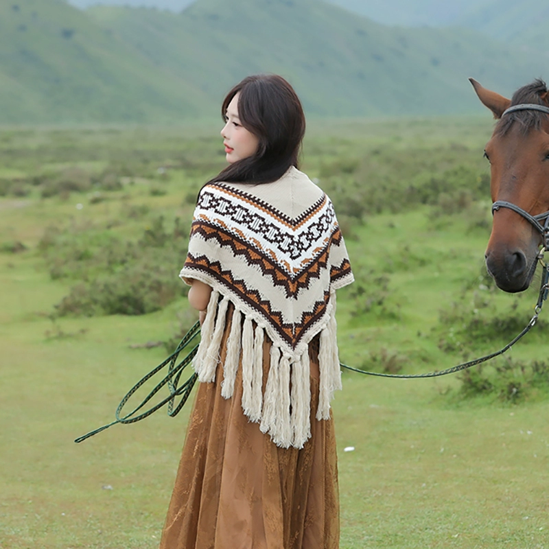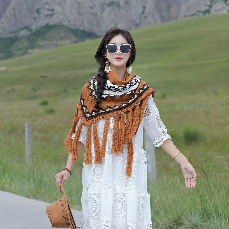 Tassel shawl for women Tibetan Yunnan ethnic style wool