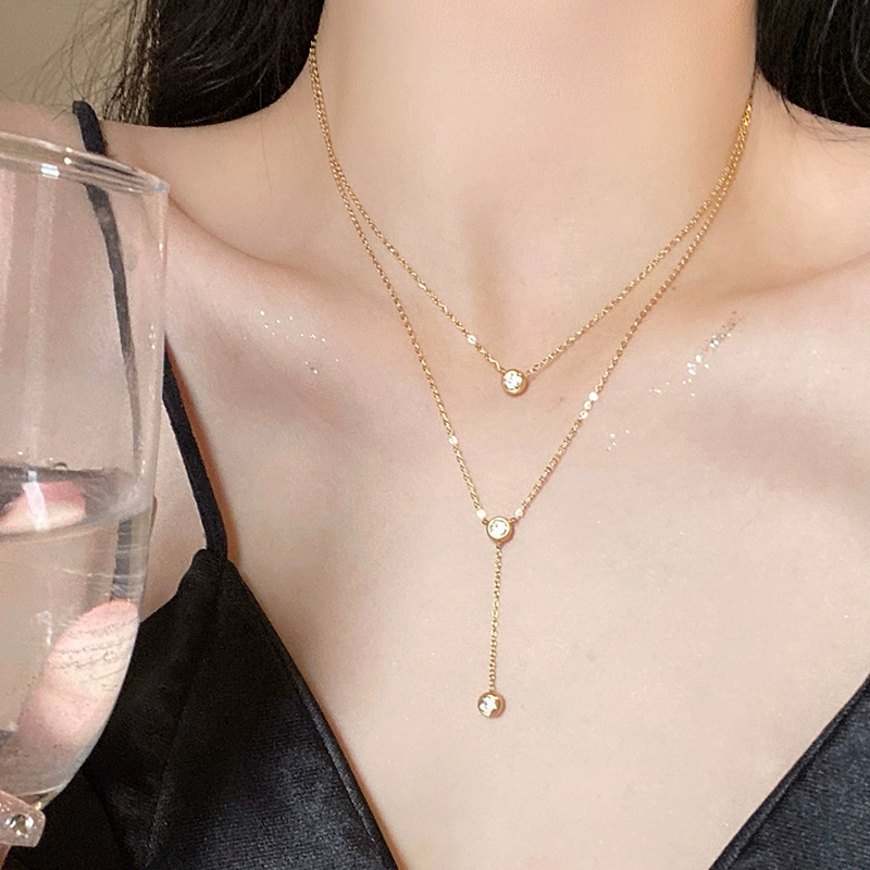 | nameOriginal | Tassel titanium steel double layer pendant jewelry for women with single diamond |