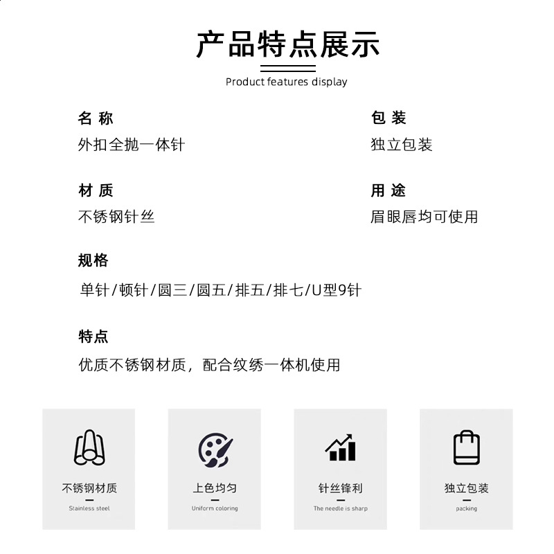 | nameOriginal | Tattoo bayonet integrated needle eyebrow eyeliner lip floating machine external button needle white bayonet microneedle full throwing machine |