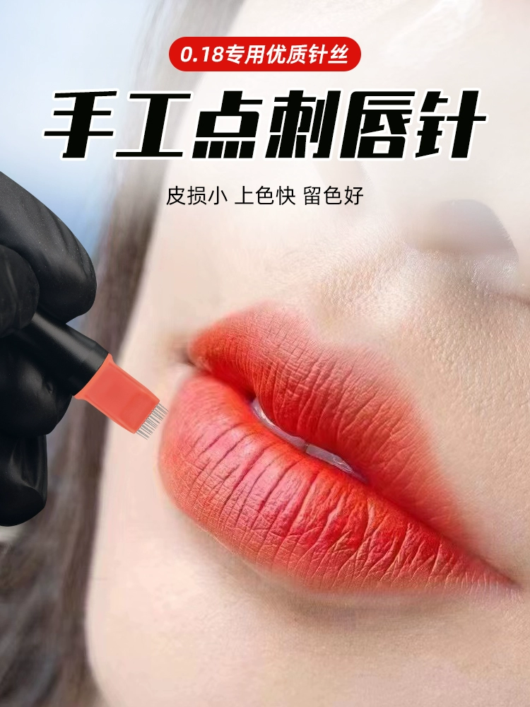 | nameOriginal | Tattoo embroidery hand-made needle point crimson lip bleaching quick zero scab tattoo lip needle piece three rows of light kiss light oxygen needle supplies tools |