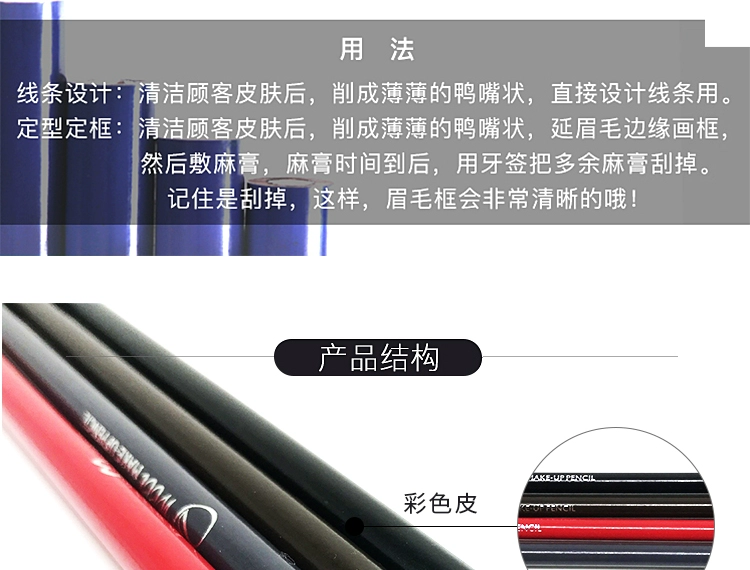 Tattoo eyebrow pencil, long-lasting waterproof pen, fixed makeup hard core design, solid color eyebrow pencil, eyeliner, lip liner, tattoo positioning pen