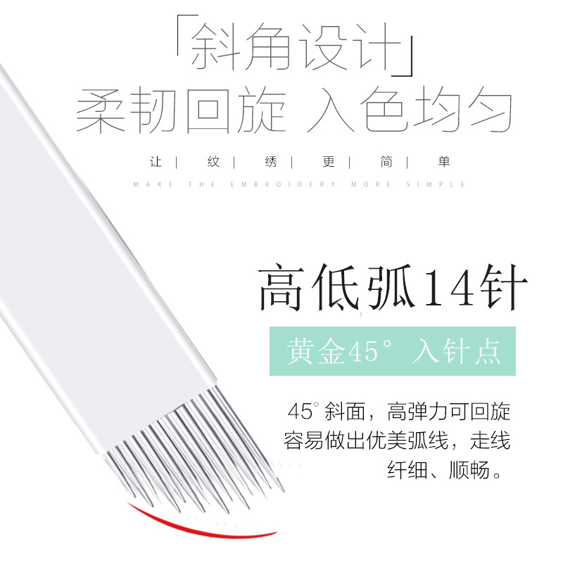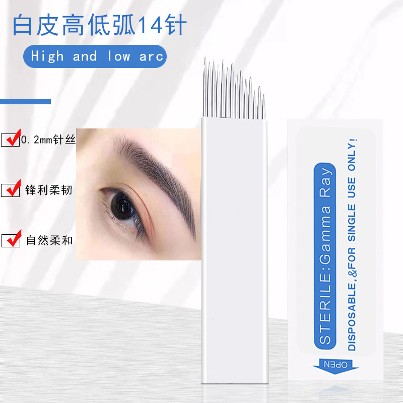 | nameOriginal | Tattoo needle manual fog eyebrow manual needle white leather high and low arc 14 needle semi-permanent fog eyebrow tattoo supplies |
