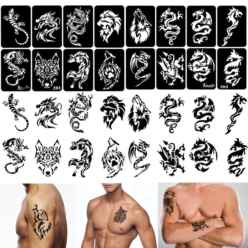 | nameOriginal | Tattoo Template Hollow Board Simulation Tattoo Men's Arm Wolf Dragon Haina Spray Painting Three-Layer Laminated Small Template |