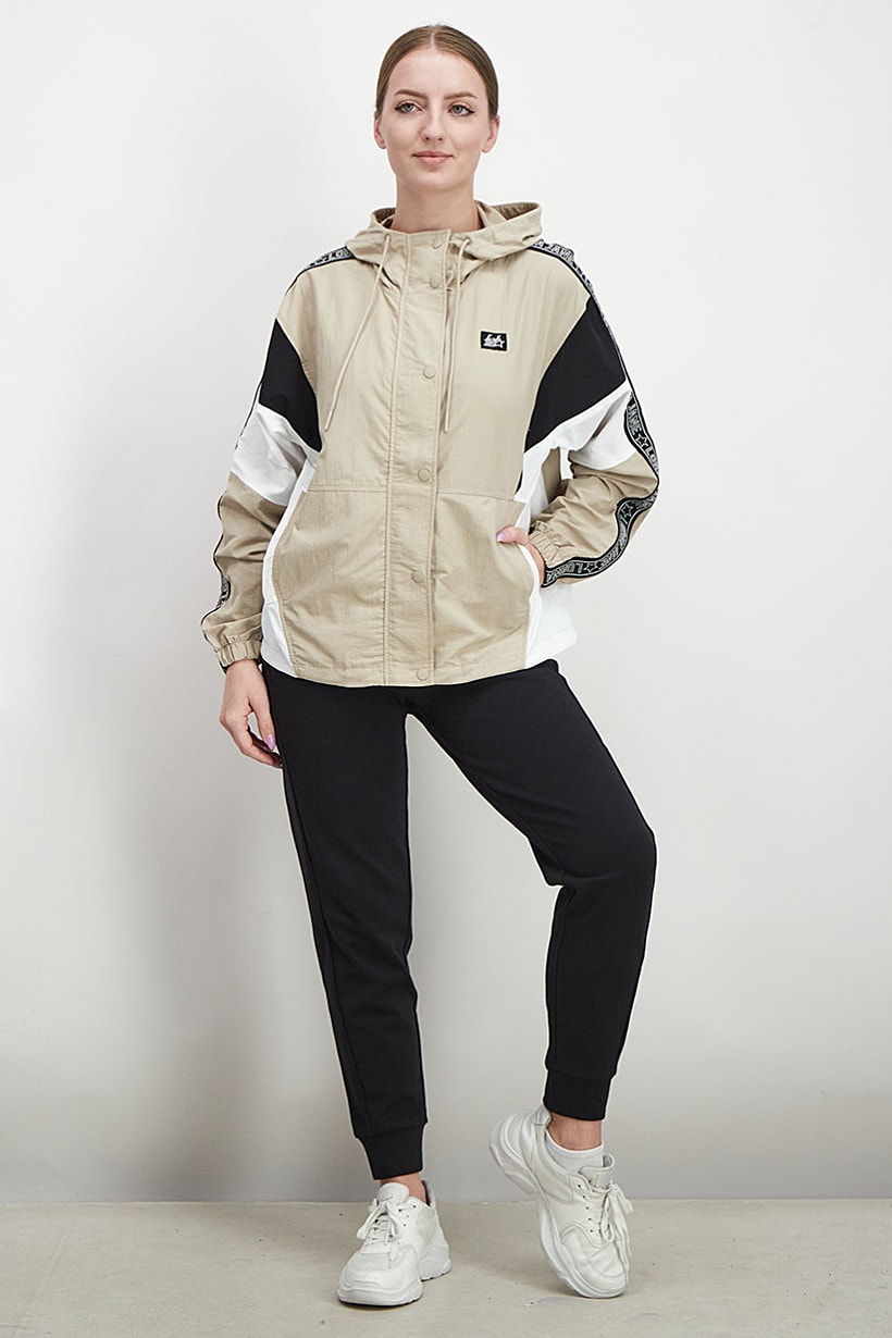 Women Clothing, Sportswear, women sports fit long sleeve active jacket taupe and white