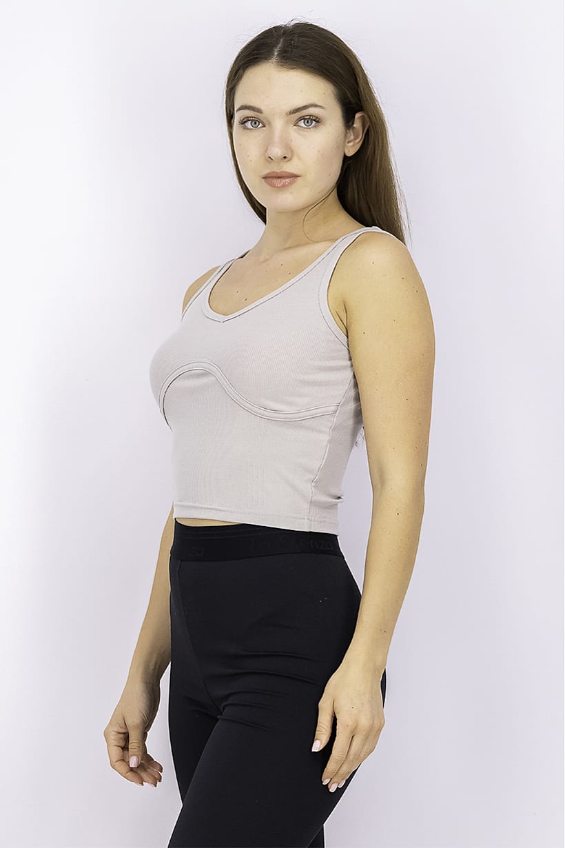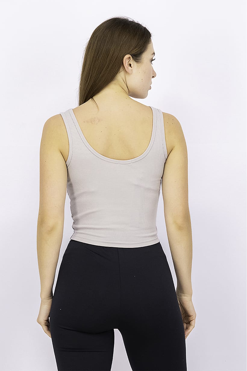 Taupe Grey Sleeveless Training Top for Women’s Sportswear.