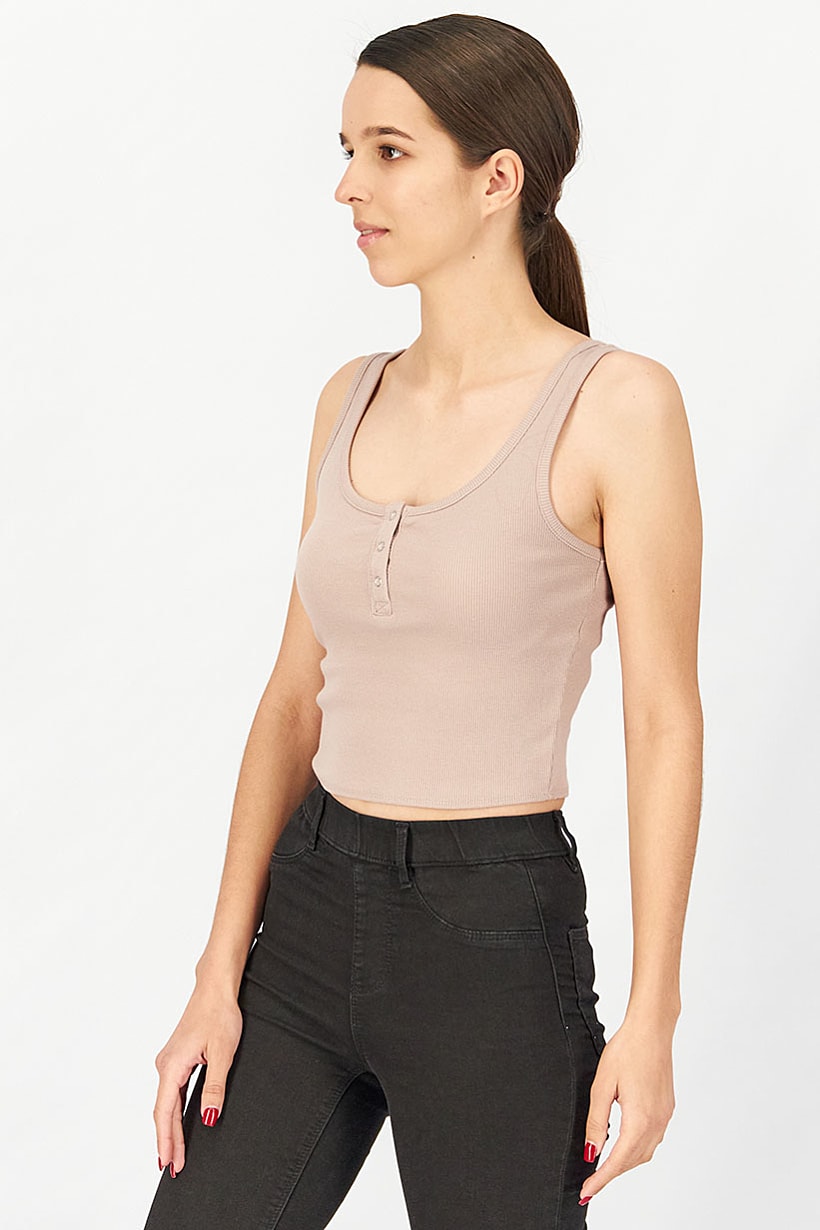 | sub_Categories | Women Clothing, Tops & Tees, women u neck sleeveless ribbed crop top taupe |