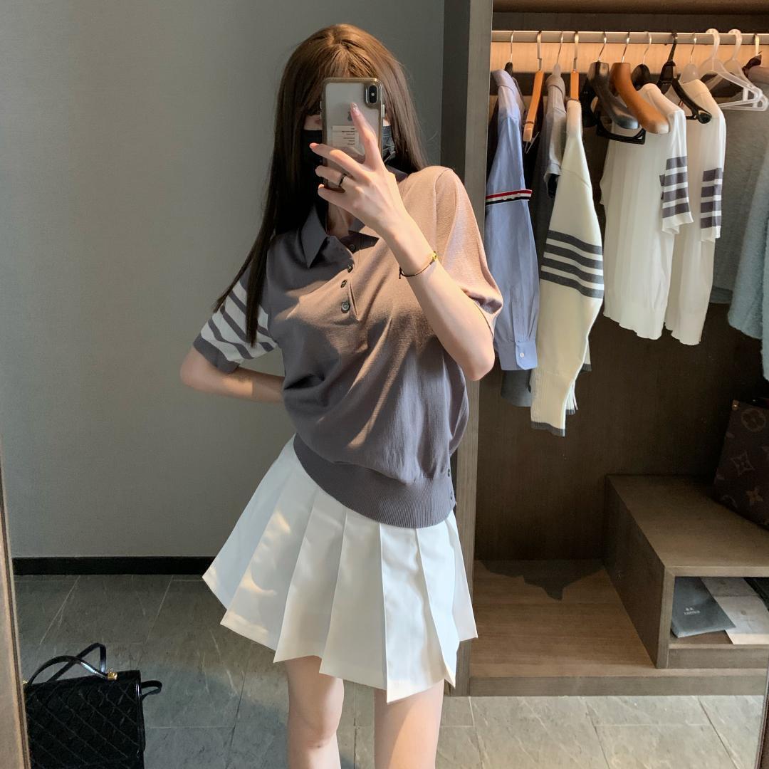 | nameOriginal | TB Women's Summer Polo Collar Short-sleeved Top for Men and Women Classic Four-bar Ice Silk Polo All-match Basic Pleated Skirt |