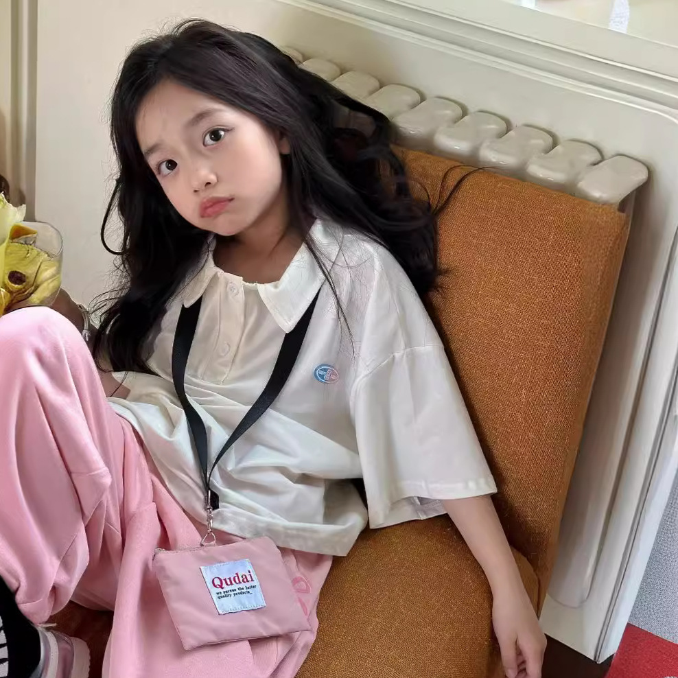 | nameOriginal | TCkids2024S summer girls college style thin polo shirt short sleeve T-shirt white |