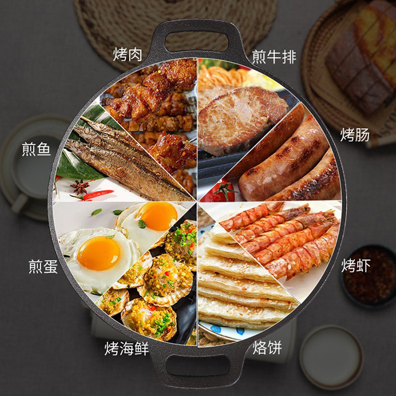 | nameOriginal | TD61 cast iron baking pan barbecue pan induction cooker card stove universal household uncoated non-stick pan outdoor concave burning |