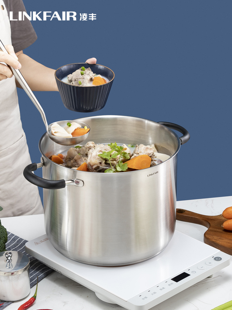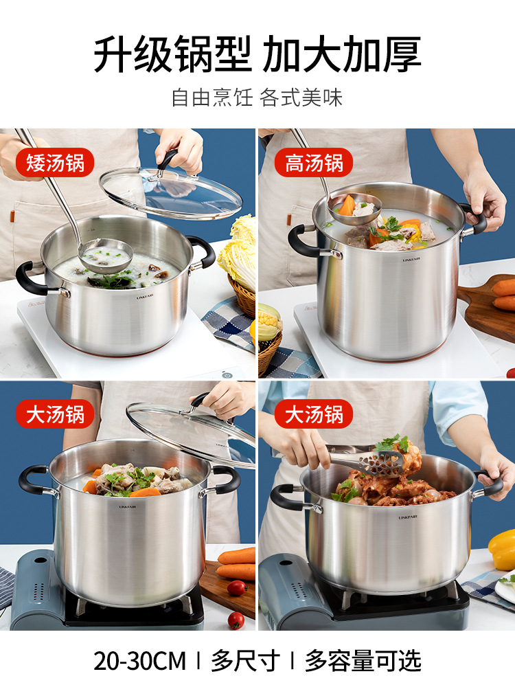 TD61 double ear soup pot 304 stainless steel pot thickened household stew pot with high depth soup pot gas induction cooker cooking pot
