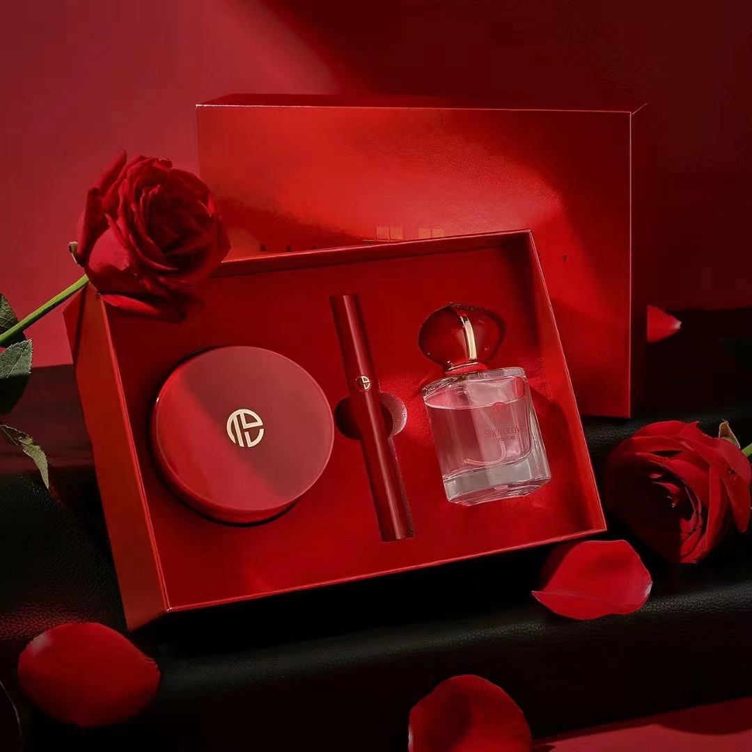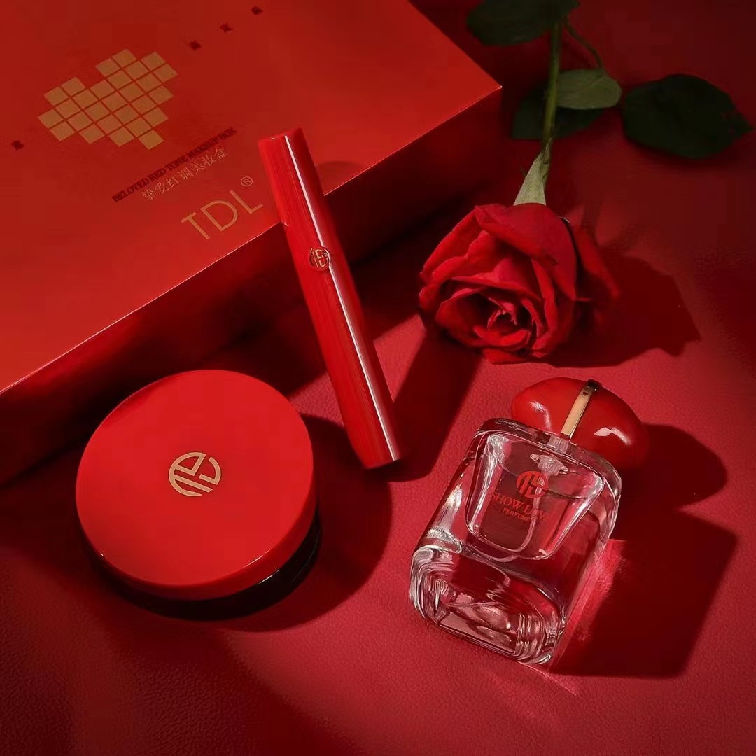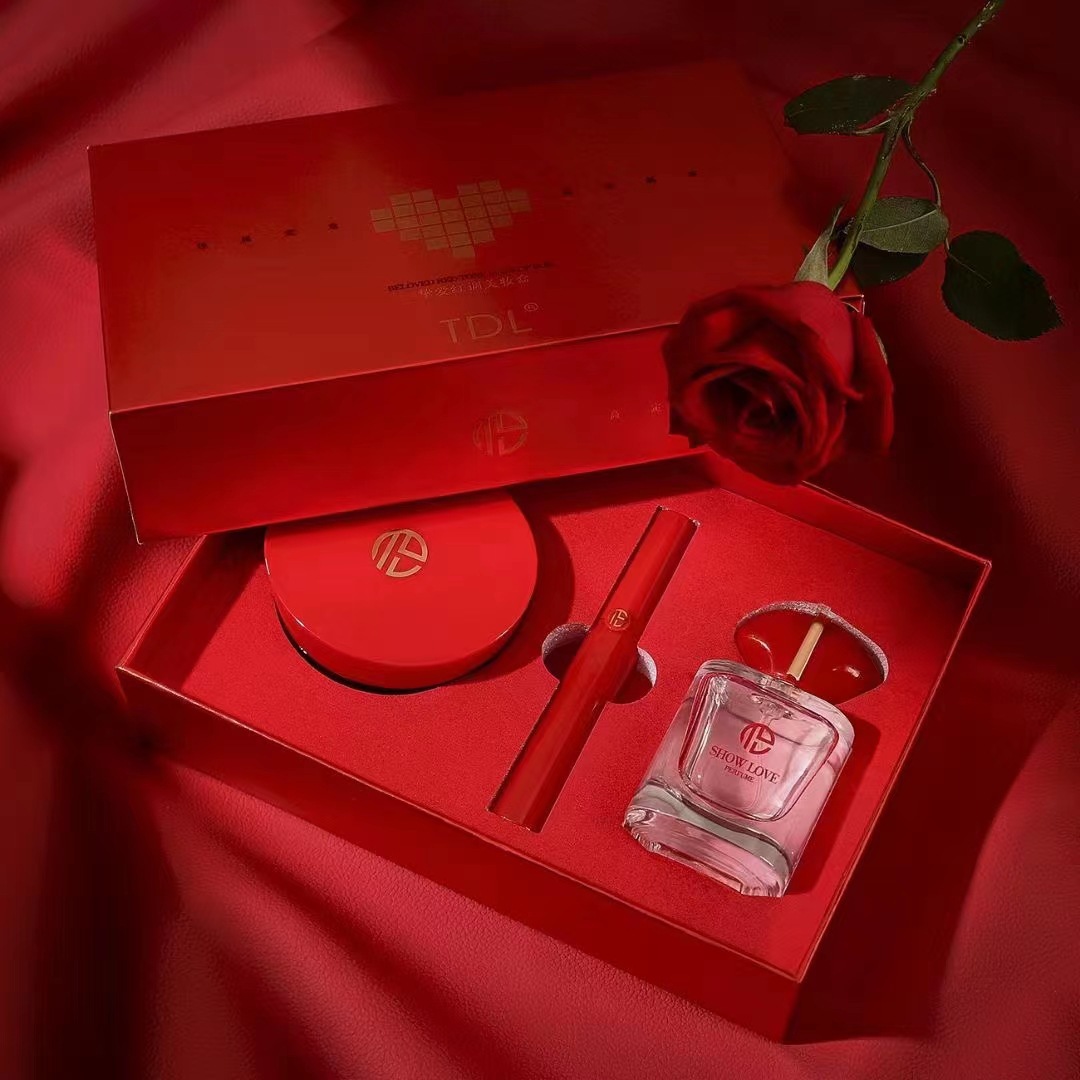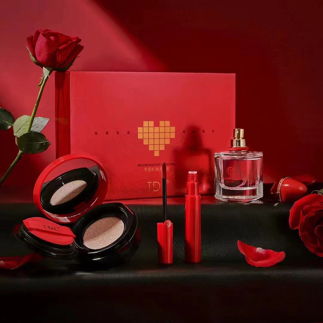 TDL Beloved Red Beauty Makeup Set Box Three-piece Air Cushion Lip Glaze Perfume Exquisite Valentine’s Day Gift Box