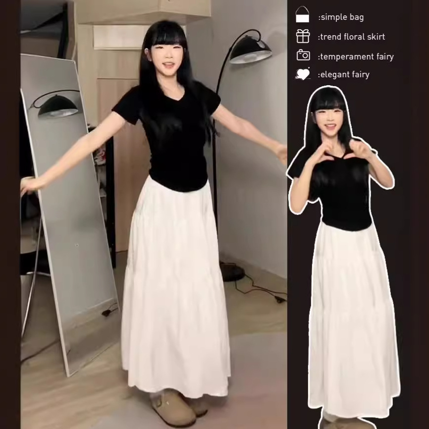 | nameOriginal | Tea Break A Set of Summer Little Gentle Short-sleeved T-shirt A- line Skirt Pleated Cake Skirt suit Women |