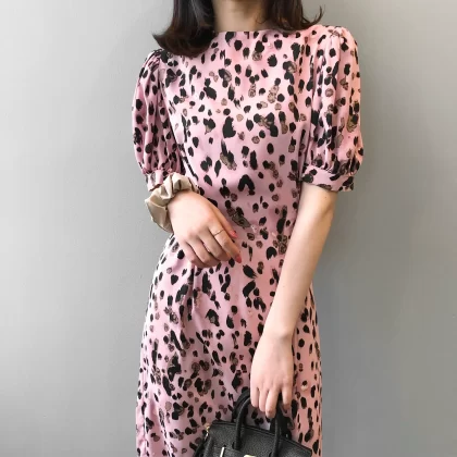 | nameOriginal | Tea break women's summer pink leopard print chiffon royal sister dress |