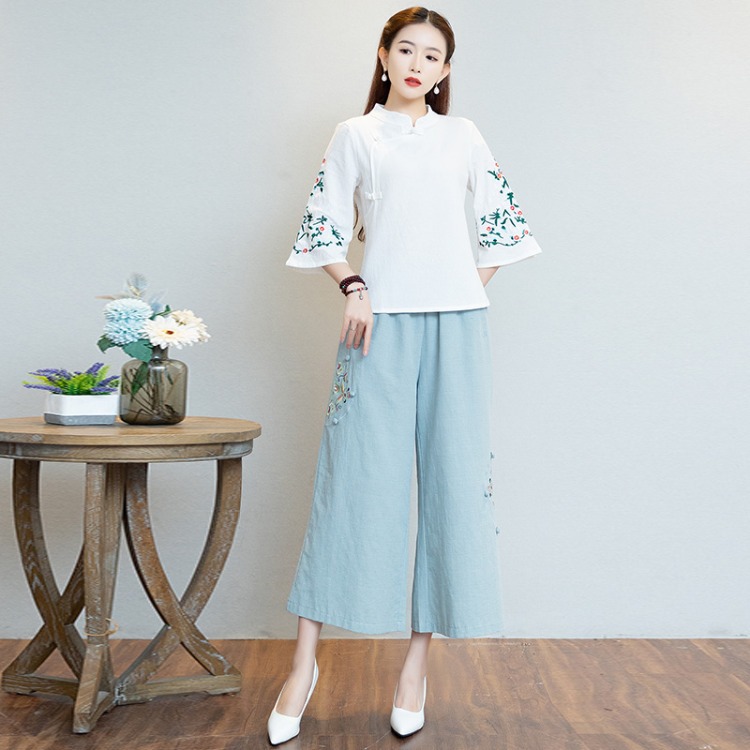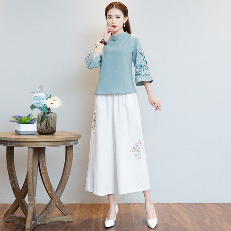 | nameOriginal | Tea clothing women's improved Tang suit top women's tea artist ear picking work clothes Chinese style embroidered Chinese ethnic style suit |