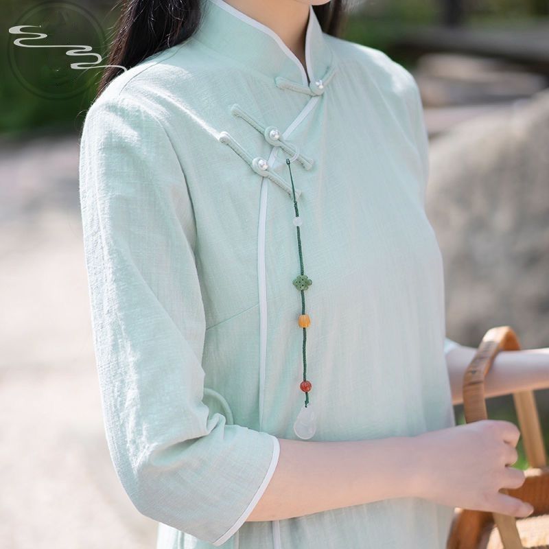 | nameOriginal | Tea clothing women's new spring and autumn Zen wide leg pants two-piece wind improved cheongsam literary dress a generation of hair |