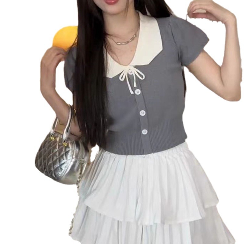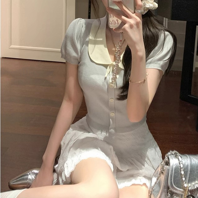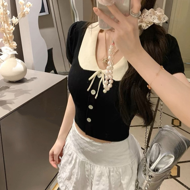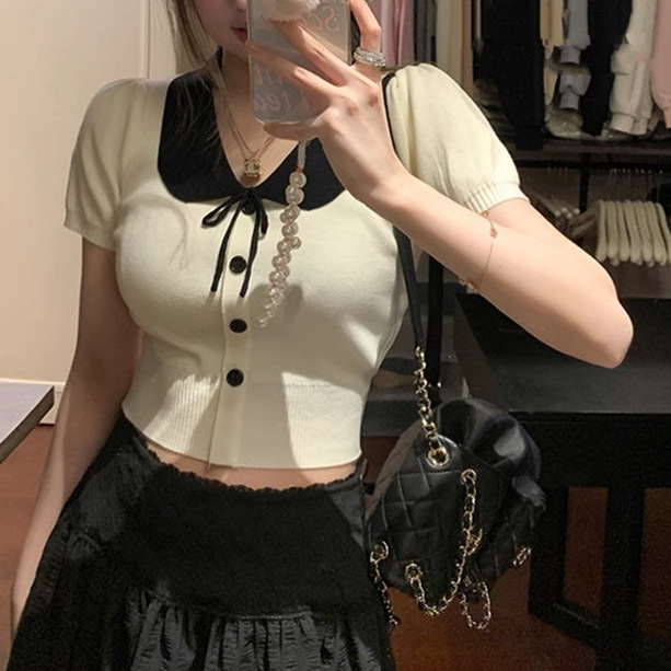 | nameOriginal | Tea Doll Collar Bubble Short-sleeved T-shirt Women's 2024 New Summer Short Chic Beautiful Small Top Knitted Shirt |
