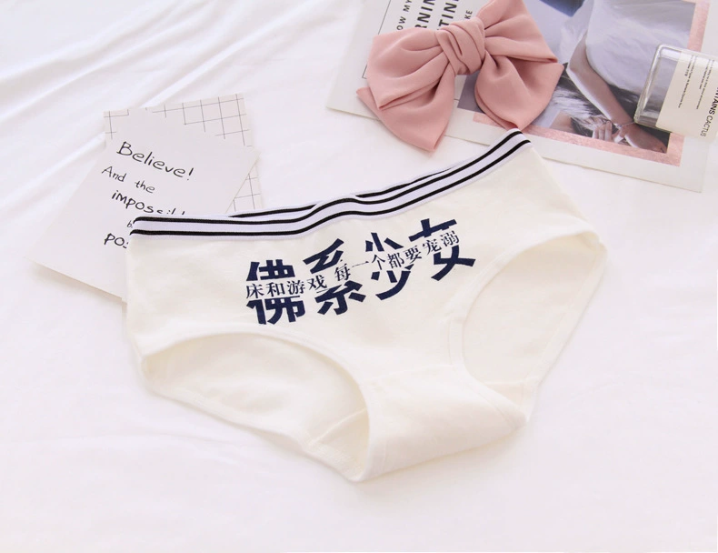 | nameOriginal | Tea little fairy fat and cute soft girl printed Japanese text mid-waist triangle bottom girl pure cotton underwear |