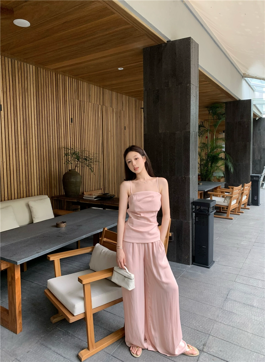 | nameOriginal | Tea pink women's summer casual two-piece suspender set |