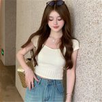 | nameOriginal | Tea-style Sweetheart Pure Desire Square Collar Knitted Short-sleeved Women's Summer Elegant Slim-fit Thin Short Top |