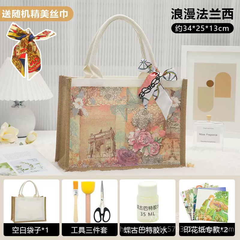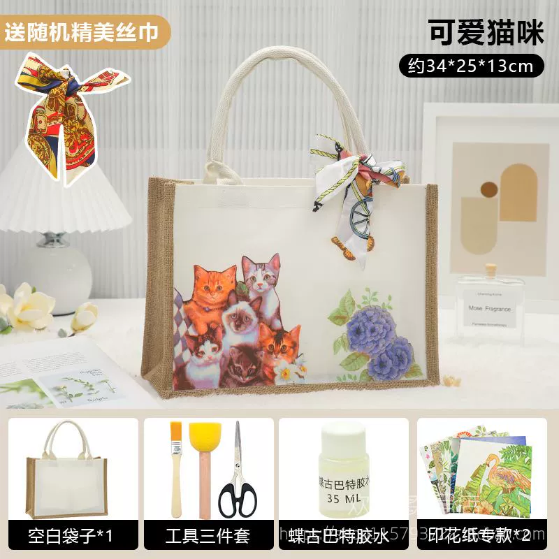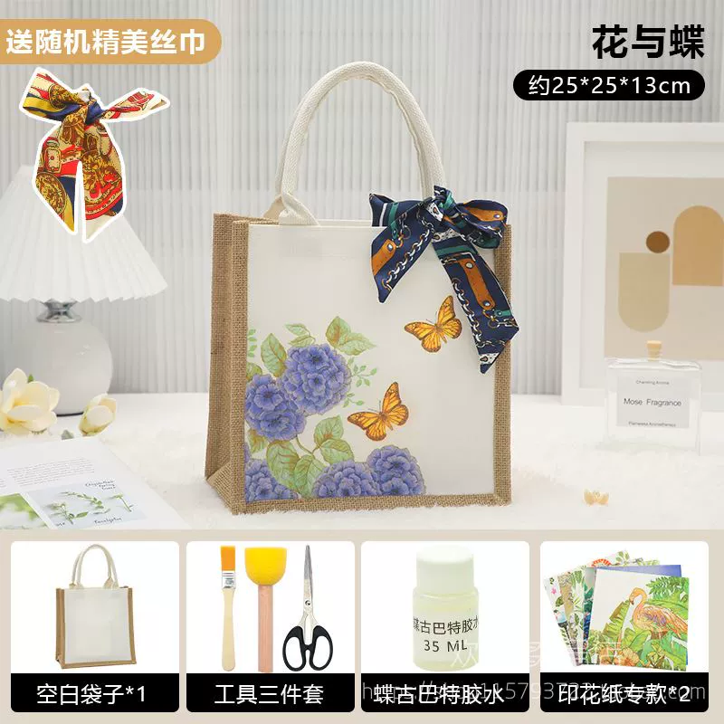 | nameOriginal | Teacher's Day handmade bag diy production material bag Butterfly Gubat creative canvas bag portable linen bag |