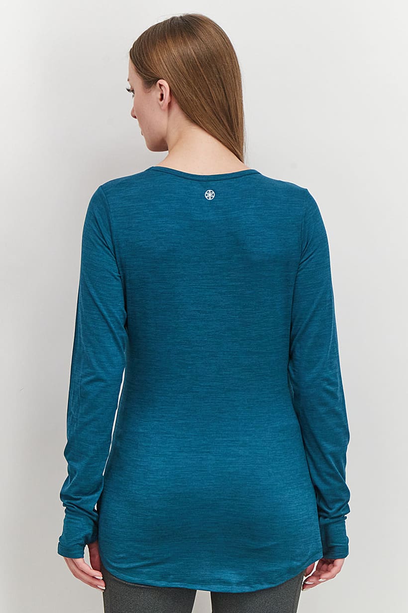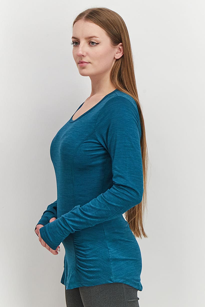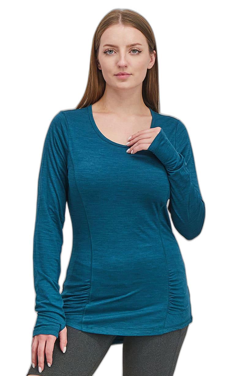 | nameOriginal | Women Round Neckline Long Sleeve Plain Top, Teal Blue |